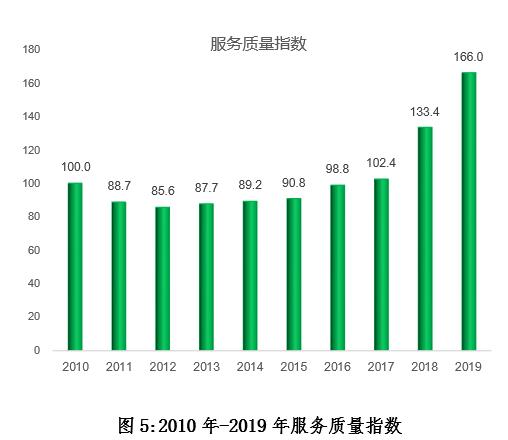 2019年,快遞服務(wù)質(zhì)量指數(shù)為166.0,同比提高24.4%。