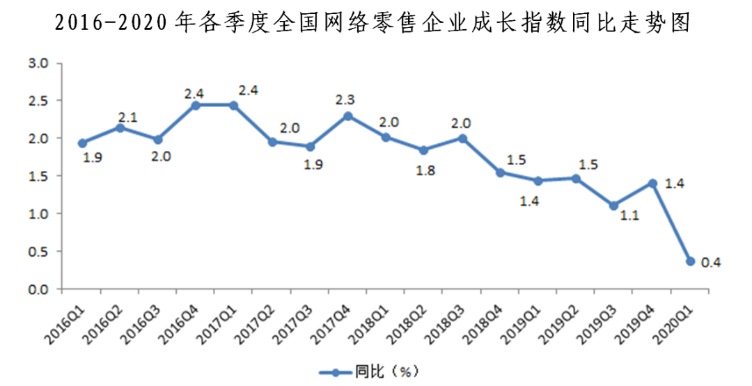 一、網(wǎng)絡(luò)零售企業(yè)成長指數(shù)同比增長0.4%,環(huán)比下降1.8%。