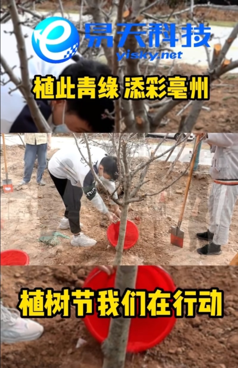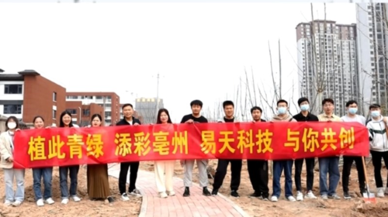 2023年3月11日,亳州易天科技受邀參與亳州市委網(wǎng)信辦舉辦的“植此青綠,添彩亳州”為主題的植樹(shù)節(jié)活動(dòng),在植樹(shù)節(jié)種下綠色希望。